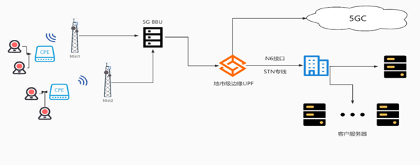 考虑到客户对视频传输清晰度、流畅度以及监控数据的安全性和保密性要求较高,故本项目采用“比邻”的模式,监控视频数据顺利获得切片传输到位于珠海电信机房的边缘UPF上,再顺利获得STN专线安全推送到客户的服务器上。而现场安装时新增一台室外型CPE,卡签入该项目专用DNN,并给每张卡配置固定IP,方便后期监控维护。CPE顺利获得网线与智能摄像头连接,如同一个监控点位有多个摄像头,可在CPE与摄像头间新增一台工业级微型交换机,实现一个CPE带多个摄像头。